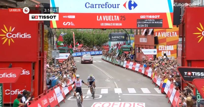 Marc Soler wins Vuelta a España stage 14 from breakaway as Joao Almeida and Jonas Vingegaard deadlocked once more "UAE Team Emirates XRG climber attacks in final 15km to take his fourth career Vuelta stage win." By Dan Challis (cyclingweekly.com) (Image credit: Getty Images) Vuelta a España: Marc Soler solos to stage 14 victory atop Alto de la Farrapona "UAE Team Emirates XRG dominate in the Asturias mountains as Jonas Vingegaard stays in the overall race lead after a battle among GC favorites." By Félix Serna (cyclinguptodate.com) (Image credit: Getty Images via cyclingnews.com) Vuelta a España Stage 14 - Is UAE's domination bad for cycling? Did Marc Soler disobey team orders? "We could once again talk about UAE’s tactics, whether Juan Ayuso works or not, whether he drops early or late, whether Marc Soler is up front or behind, but what really stands out to me is that a team owned by a State with an unlimited budget has been crushing the 2025 season with victories, and at this point has already won 7 out of 14 stages in the Vuelta a España 2025." By Félix Serna (cyclinguptodate.com) (Image Credit not Found) Israel Premier Tech modifies jersey for Vuelta amid protests "The team will be racing with a monogram-branded kit for the remainder of the race" By Matt Hansen (cyclingmagazine.ca) (Image Credit not Found) 12 arrested after protests block Angliru climb at Vuelta "Demonstrators briefly halted Stage 13 before Guardia Civil cleared the road at La Vuelta a España." By Matt Hansen (cyclingmagazine.ca) (Image Credit not Found) "Juan Ayuso only rides for Team Ayuso" - Jan Ullrich analyze Vuelta a Espana chaos at UAE "Juan Ayuso, the 22-year-old Spanish talent whose relationship with his soon to be former team, UAE Team Emirates – XRG, has become increasingly strained." By Fin Major (cyclinguptodate.com) (Image Credit not Found) Giulio Ciccone explains why, despite great legs, he can no longer compete with the best in the Vuelta "Ciccone showed an incredibly high level in the first week, but then dropped back slightly in the second week. The Italian from Lidl Trek has an explanation for this." By Bram van der Ploeg (idlprocycling.com) (Image credit: Getty Images via cyclingnews.com) Analysts praise Almeida, but Zonneveld has doubts: "If it had been Pogacar, Vingegaard would have responded" "While everyone anticipated a significant blow from Jonas Vingegaard, the Danish rider from Visma | Lease a Bike had his hands full just keeping up with João Almeida on the Angliru." By Bram van der Ploeg (idlprocycling.com) (Image credit: Tim de Waele/Getty Images via cyclingnews.com) They never got to see the Angliru: Along with O’Connor and Ryan, Castrillo also forced to withdraw after hard crash (and fracture) "We had already lost 22 (!) riders in the first twelve days of this Tour of Spain, but Friday's withdrawals included some big names." By Bram van der Ploeg (idlprocycling.com) (Image Credit not Found) 2025 Vuelta a Espana Live Streams "2025 Vuelta a Espana August 23-September 14, Spain, Stage 14 (Avilés → La Farrapona. Lagos de Somiedo, 135.9km) Live